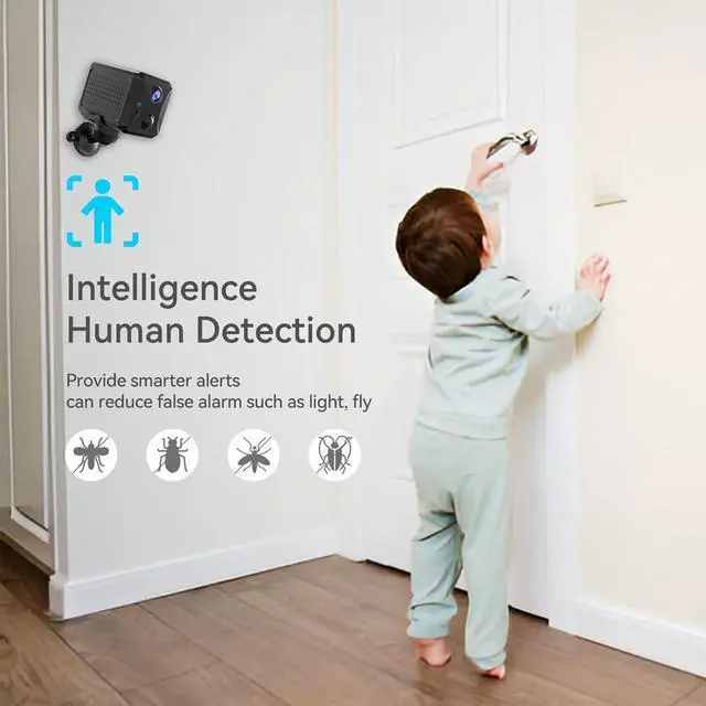 PIR Motion-Activated Alerts & RecordingMini security camera with smart AI detection Sends instant alerts to your phone and auto-records to SD card/cloud when motion is sensed
