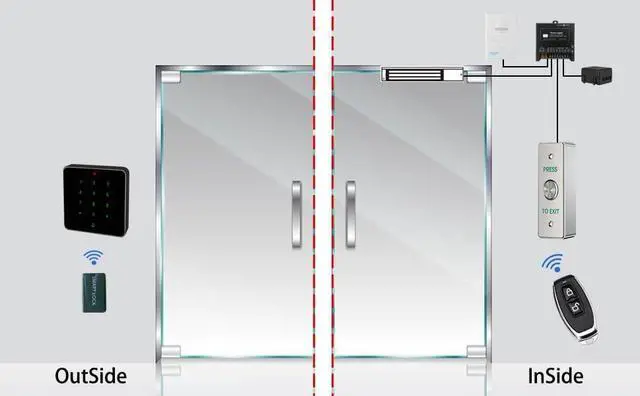 Waterproof - The Access Control Keypad, Press to Exit Button, Magnetic Lock are all waterproof and can be installed outdoors to work in rain weather.