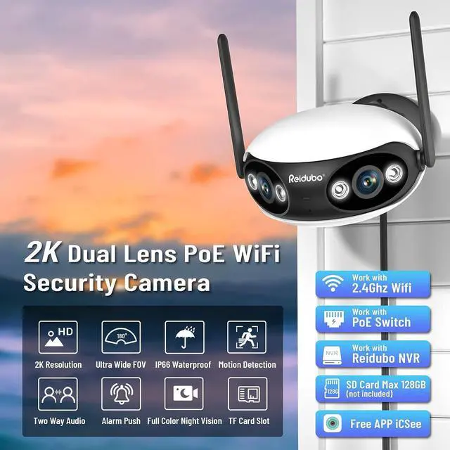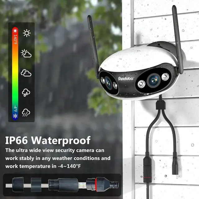 Ultra-Wide Field of View PanoramaReidubo dual lens WIFI camera can combine two Lens into one view to provide a 180° ultra-wide viewing angle and cover much finer details, reducing surveillance blind spots. One outdoor security camera works as two. Save your money while wider field can be recorded.