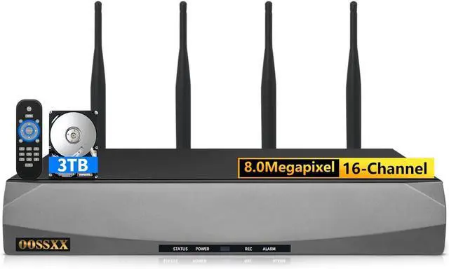 8.0 Megapixel 16-Channel Wireless NVR Network Video Recorder, Supports up to 16 x 8MP Wireless IP Cameras, 4-Antennas Enhance WiFi, Dual-USB Ports, Max to 6TB (3TB HDD Included)