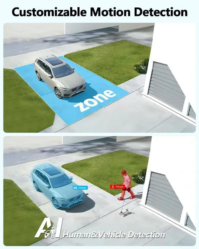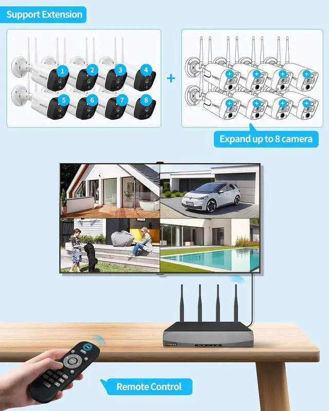 {Motion detection&Email Alert} The NVR offers motion detection records and e-mail alerts. This surveillance system is designed to send an email alert, complete with text message of the activity if any motion is detected, and E-mail alert will be sent to you immediately.Or if any camera experience video loss.