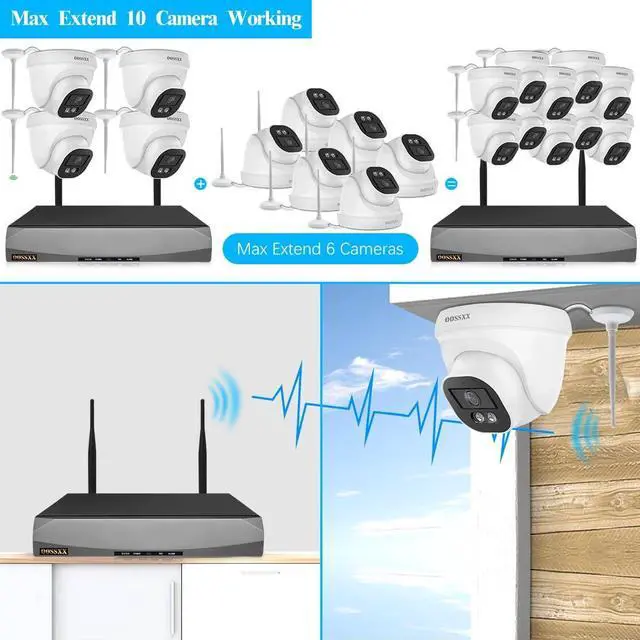 {130° Ultra Wide-Angle Lens Equipped} Optical wide-angle lens with multi-layer lens, provides you about 130° wide viewing angle and reduces dead ends of surveillance areas. {Audio Camera} With built-in microphone in the camera, our Wi-Fi security camera allows you to listen and watch what happened through the APP in your phone clearly and instantly no matter where you are.Please note camera is a one-way audio, you can only hear the other party talking, not the conversation. {Plug and Play PoE System} The camera kit comes with 60ft network cables, which allows for easy installation and set-up. After connecting the security cameras to the NVR ports, recording and live views can be seen within seconds via an HDMI monitor. {Waterproof & Super Night Vision} The IP67 waterproof metal design ensures that cameras mounted outdoors are not affected by any rain or dust.The camera is equipped with IR-LED system, it automatically activate the infrared mode in low lighting conditions. Everything within 65 feet can be clearly observed even at night. It insures the safety of people and home for 24 hours. {Free APP No Month Fee} Download the free app "Honestview" from App Store on your smartphone. With an internet connection, you can watch the videos remotely from anywhere on your phone (IOS&Android), PCs, or tablet