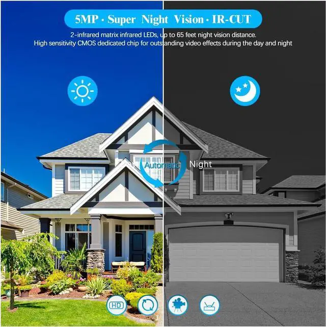 OOSSXX Security Camera WiFi 5.0MP Dome IP Camera for Home Surveuillance System, Outdoor Wireless Surveillance Cameras Extend, 130° Ultra Wide-Angle with Audio