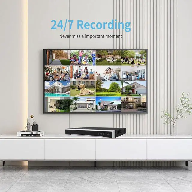 With dual SATA ports supporting 8TB HDDs each (not included), this NVR ensures uninterrupted 24/7 recording. The 16-channel synchronous playback lets you review multiple camera feeds simultaneously for comprehensive security monitoring