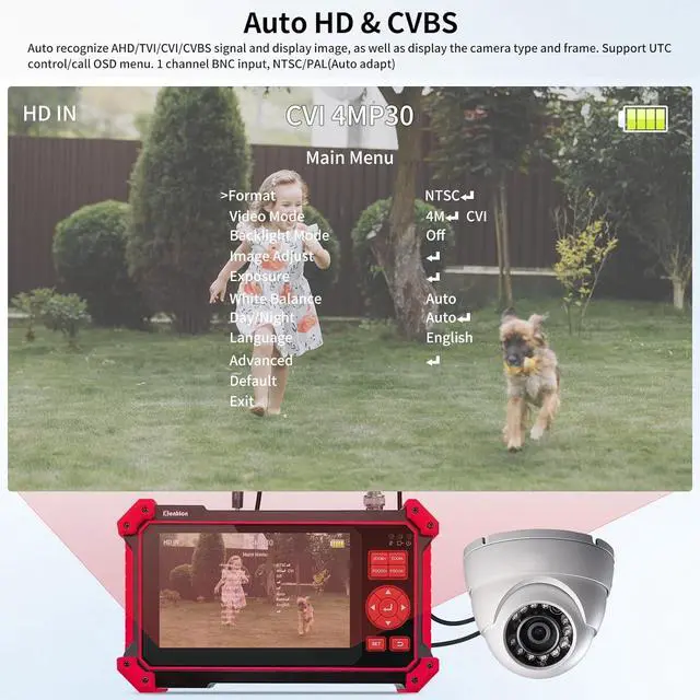 4-in-1 coaxial camera tester4-in-1 HD CCTV coaxial camera test. Support max 4K 8MP(TVI / AHD / CVI / camera test. Analog CVBS camera test, NTSC/PAL (Auto adapt). Please note: This model does not support IP camera test.