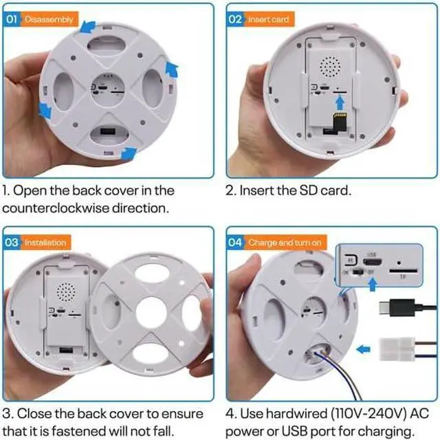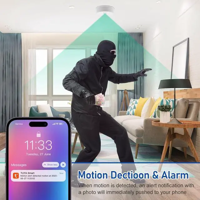 1080P HD CMOS Video Sensor The Fuma 3HW Smoke Detector Camera stands out with its ability to record video in stunning 1080p HD clarity. This high-resolution camera captures faces and intricate details effortlessly, even from a distance. Versatile and user-friendly, it comes with a mount for easy installation on either walls or ceilings, ensuring optimal coverage and discreet surveillance in any