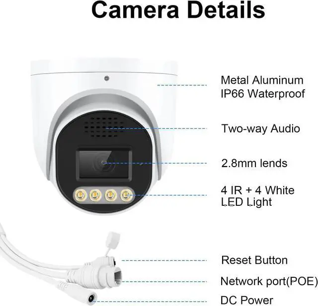 Easy Remote Viewing & Good After-sales Service: You can download the APP "Viedolink" for iOS or Android devices through your smartphone to easily monitor the indoor or outdoor area. If you have any problem with 8mp outdoor security PoE camera, please feel free to contact us, we will give you a good solution.
