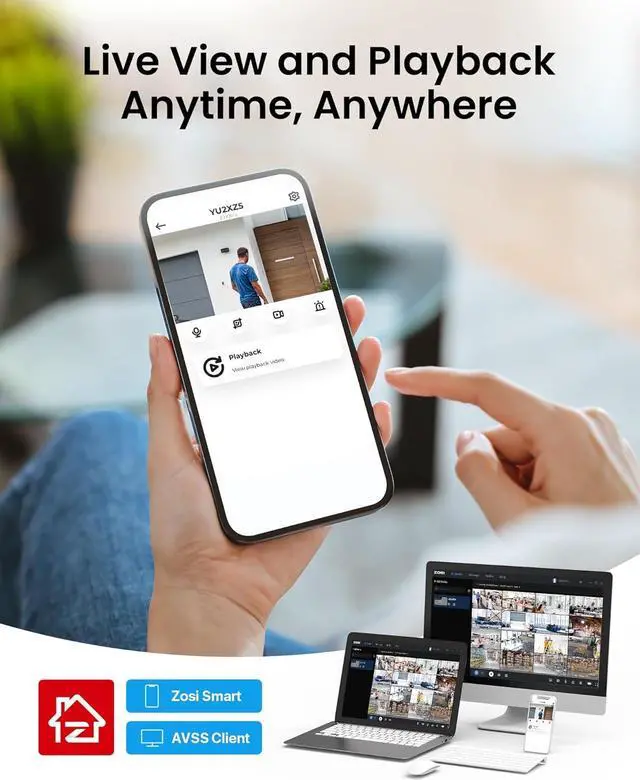 Remote Access and Control: Realize rich remote monitoring functions through Zosi Smart app, including live view, playback, monitoring point management, video download and storage management, etc. Support multi-device simultaneous access to easily monitor your system anytime, anywhere.