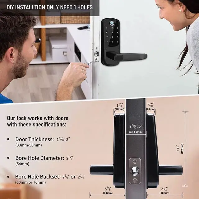 Easy InstallationInstall in a flash without Extra Drilling, keyless locks Perfect for American front doors. Just need a screwdriver, you can install electronic door lock within 10 minutes, no need for costly locksmith services. Quickly replace your existing front door handle, levers, door knobs, deadbolts or locksets. Reversible handle fit both left and right handed doors.