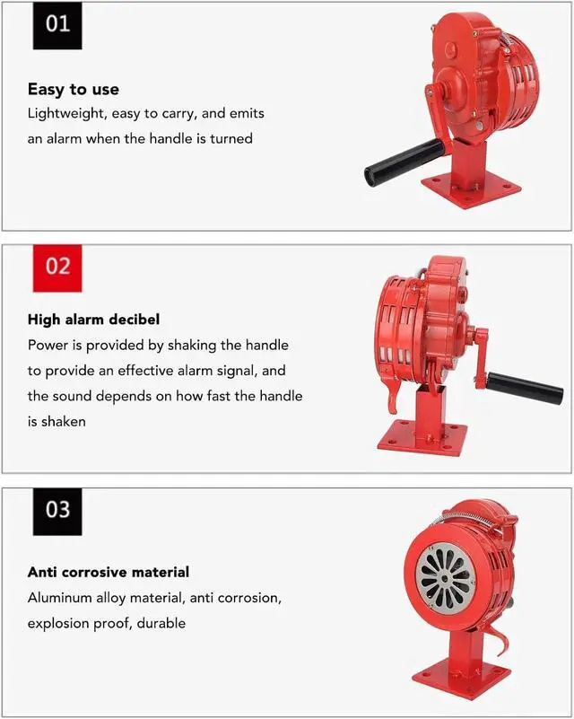 • Alarm and Solid Construction: With an adjustable volume that can reach up to 110dB, the hand crank siren offers a sharp, penetrating sound with a large range, making the siren and long lasting.