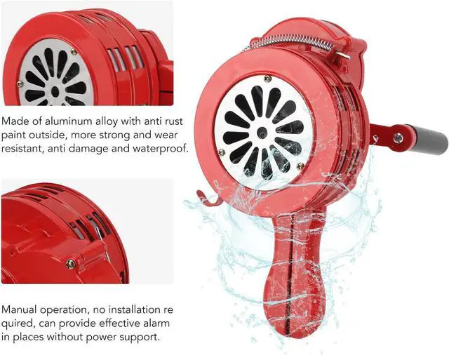 ALUMINUM ALLOY CONSTRUCTION: This hand crank alarm features a sturdy aluminum alloy structure and coated with anti paint, making it strong, anti damage and Its durability ensures a long service life.