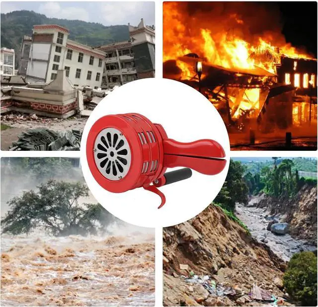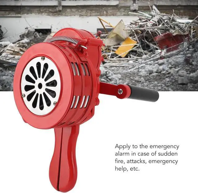 URGENT REMINDER: Featuring a handle and an internal mechanical device, the alarm can generate high frequency sound waves to emit a noise by simply cranking the handle. With its high volume, it effectively alerts people in emergency situations.