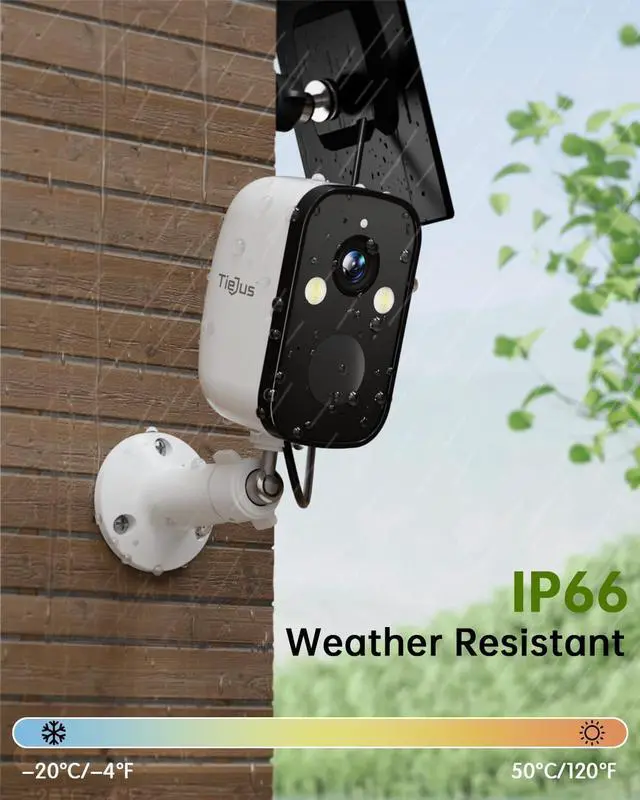 2K Resolution & Full Color Night Vision-TIEJUS Security Cameras Wireless Outdoor delivers 2K quality video and images, allowing you to capture every detail of the picture. Equipped with 2 white lights and 4 IR lights, TIEJUS solar security camera wireless outdoor provides clear black-and-white images or color images even in complete darkness with a viewing range of up to 55 feet.