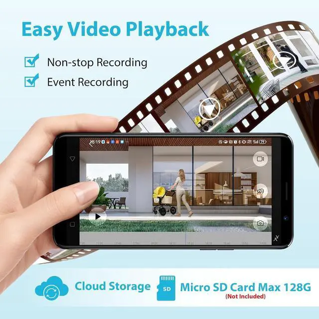 Flexible Storage & Smart Home Integration: Supports both SD card and cloud storage options for versatile video recording and playback. Seamlessly integrates with Alexa and Google Assistant for voice control and smart home automation (2.4GHz Wi-Fi supported).