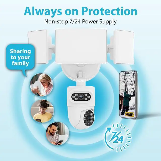 24/7 Continuous Monitoring & Family Sharing: Dual lens security camera keeps a watchful eye on your home 24/7. Easily share access with family and friends for added peace of mind.