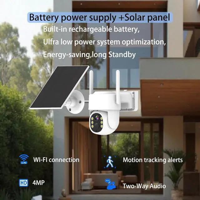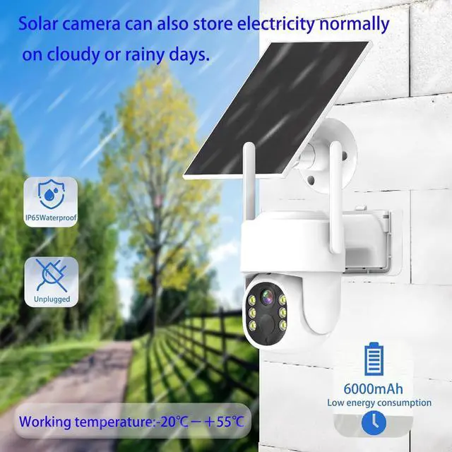 [Advanced Motion Detection and real-time alerts] This solar-powered security camera includes the latest artificial intelligence PIR sensors, capable of recognizing humans, pets, vehicles, and packages. After motion detection, it records, uploads, and sends push notifications to the app to keep you informed. In addition, cameras for home security are equipped with manual or automatic spotlights and alarms to deter uninvited guests