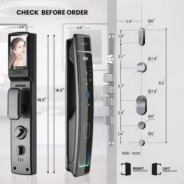 Premium Build 6068 Mortise & Sleek Design Crafted from aluminum alloy with an auto-locking 6068 mortise mechanism. Fits most doors (35100mm) and adds a touch of smart luxury to any entryway.
