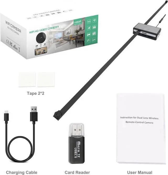 [High-Resolution Mini Hidden Dual Lens] With 1080P and 9-inch length mini dual lenses, this hidden camera can simultaneously monitor two views in real-time on the app, achieving comprehensive coverage, and capturing more of the scenes you want at any time.