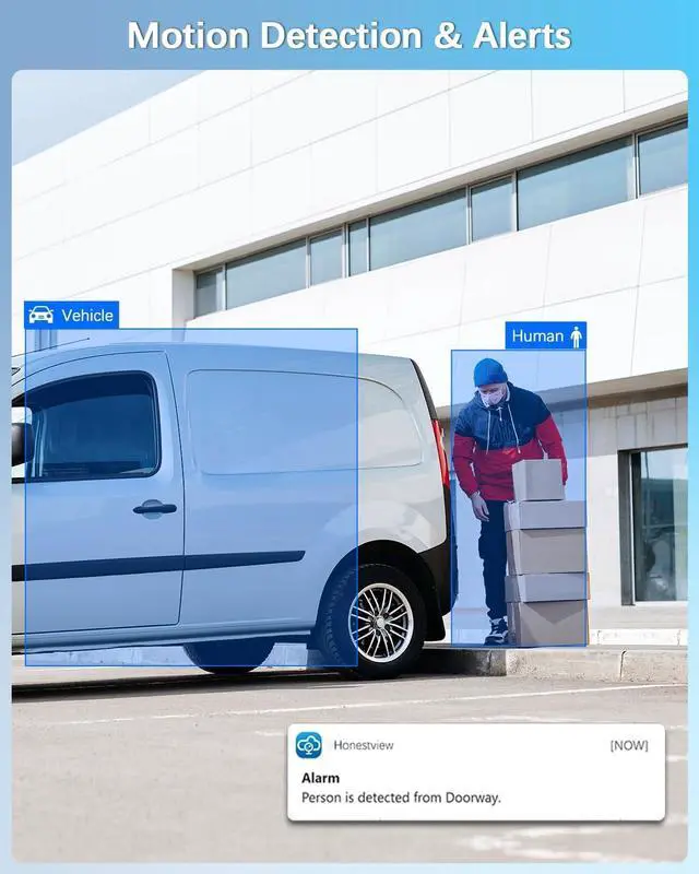 Motion Detection & AlertsOur Digital Video Recorder, equipped with smart detection, can detect moving people and vehicles while significantly reducing false alarms. As soon as the camera detects any movement, it will immediately send notifications to your phone and email alerts with screenshots.