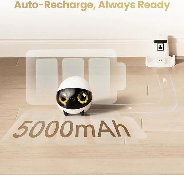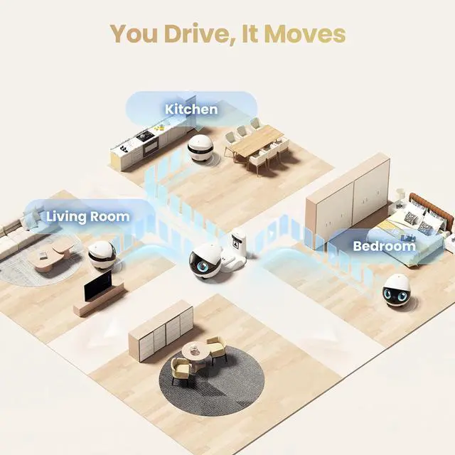 MOVABLE ROBOT WITH 2.5K CAMERA: Drive EBO home camera robot around your home with a simple tap. Glide smoothly on tracked wheels to join a family celebration from afar or keep a loving eye on your napping pet, all in stunning 2.5K clarityday or night