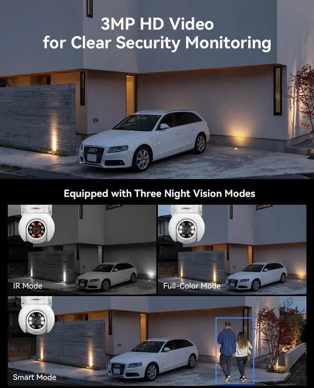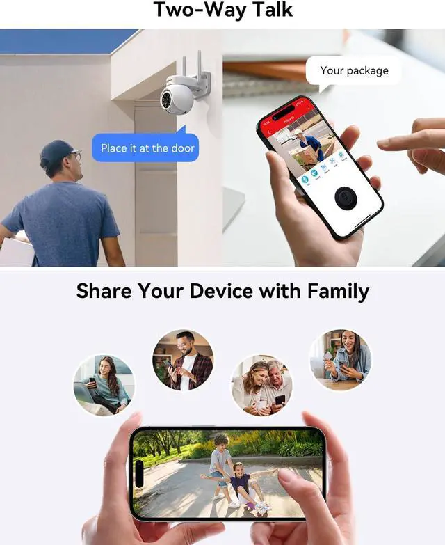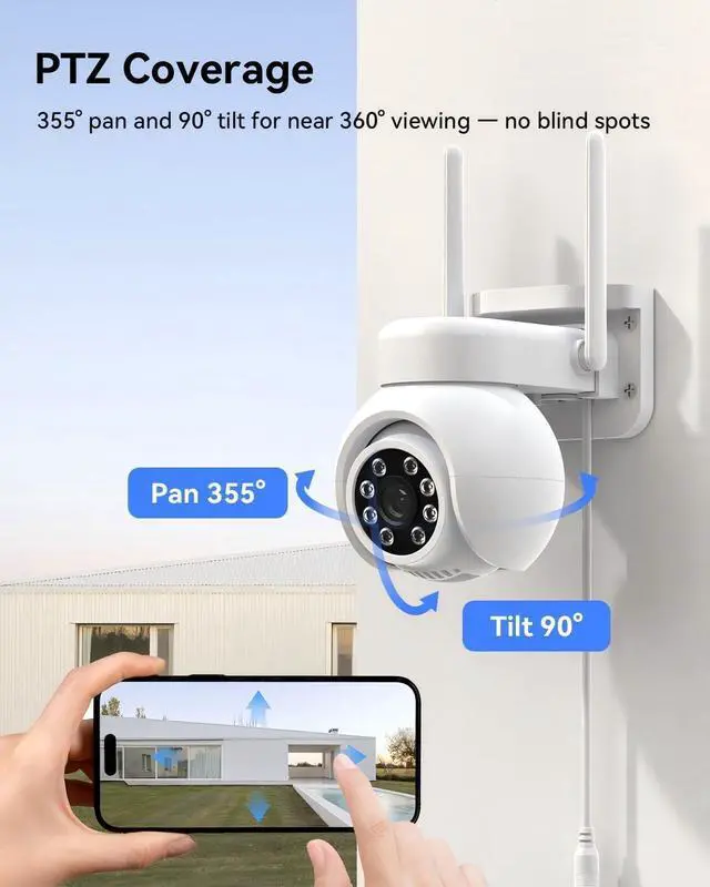Smart Motion Detection & Alert System: The wireless security cameras can detect human movement and distinguish it from other activity. When a person is detected, it can send an alert to your phone and trigger the spotlight and siren, helping you respond promptly