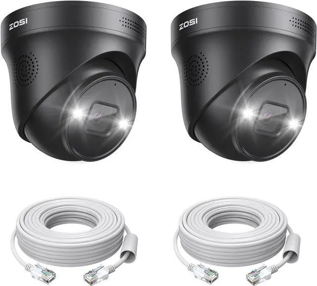 ZOSI 2PK 4K PoE IP Security Camera with Ethernet Cables,Person/Vehicle Detection,Night Vision,Sound & Light Alarm,2 Way Audio,8MP Weatherproof Outdoor Dome Camera Only Compatible 4K POE NVR