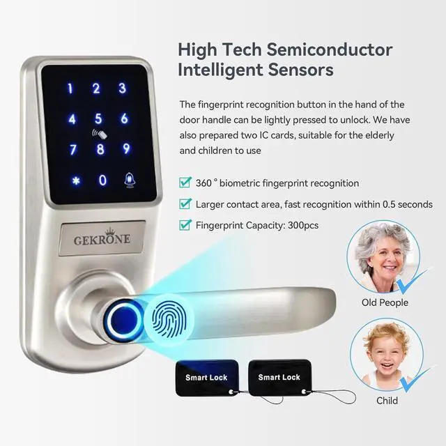 Advanced five in one intelligent door lock: We have multiple unlocking methods. You can use the TUYA app, fingerprints, passwords, IC cards, and mechanical keys to manage your locks. This application supports iOS and Android devices. In any case, you can choose the best unlocking method. In addition, the door lock also has normally open mode and automatic locking function, which is convenient and safe