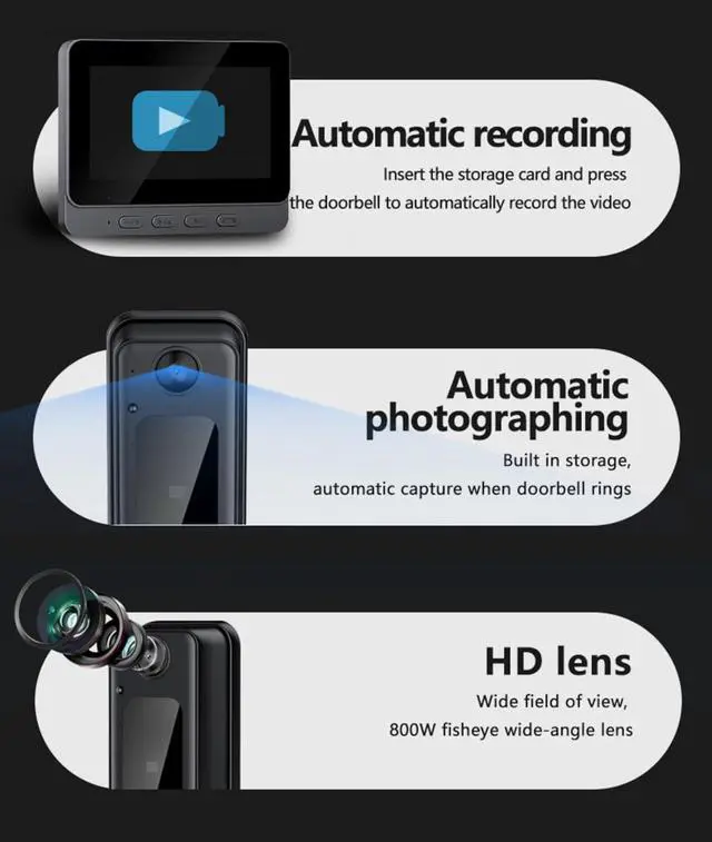 HD Camera: The 8MP high resolution camera records 1080P level HD video, recording every detail with rich visual clarity. You can clearly see facial features and other details of the visitors.