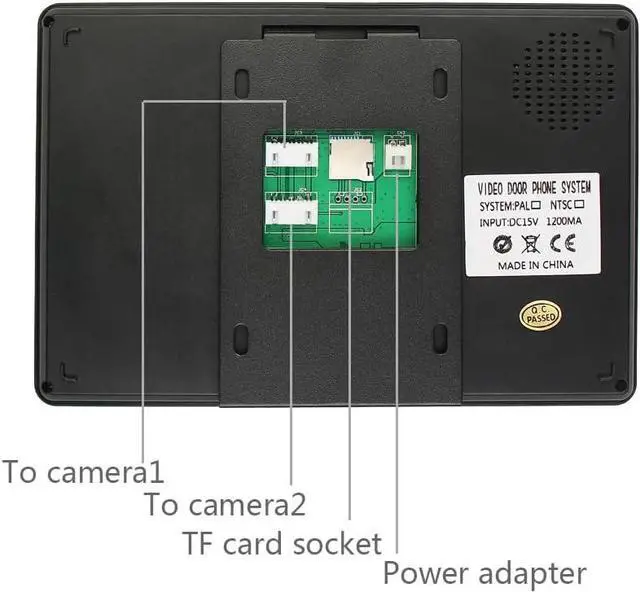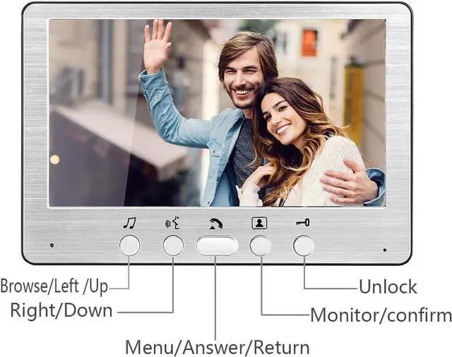 HD Doorbell Camera with Monitor : 2MP doorbell camera with rain cover, built-in speaker and microphone, 110º wide angle, night vision, rainproof, dustproof, support connects to all electronic locks. 7-inch monitor, Support external 32G micro SD card, support TUYA APP, 2-way audio, monitoring, video recording, unlocking.