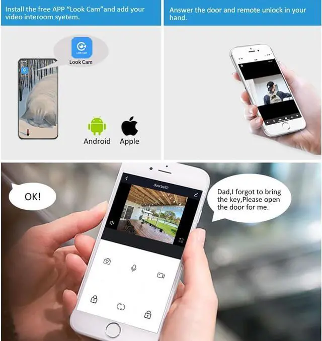 Video Doorbell with Monitor : The doorbell connection to the monitor is wired, you never have to worry a blocked signal. Even if you don't have a cell phone connected, the video doorbell system can still work properly. The monitor screen connects to your cell phone TUYA APP for real-time online monitoring and video intercom. You can talk to visitors or couriers at any time.
