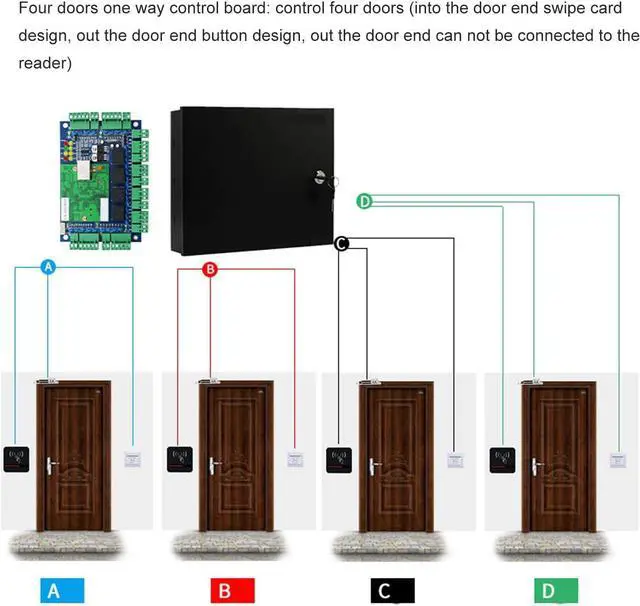 Card Reading: The control board supports 100m/109yd readers online distance, card reading frequency is 125KHz, 13.56MHz. Durable screw wiring method terminal block.