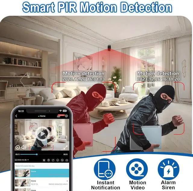 Smart Motion Detection - Always keep you informed if something new happens. It has an accurate CMOS digital image sensor that when motion is triggered, it can quickly press the app notification on your phone to alert you to the situation in the form of video clips. It can accurately identify and locate humans to effectively improve the accuracy of alerts. The alarm in the app can also warn and expel unexpected people and animals. Perfect for babysitter, elderly care, pets, car security, unexpected intrusion, indoor and public place monitoring.