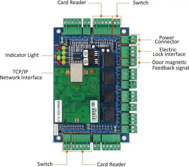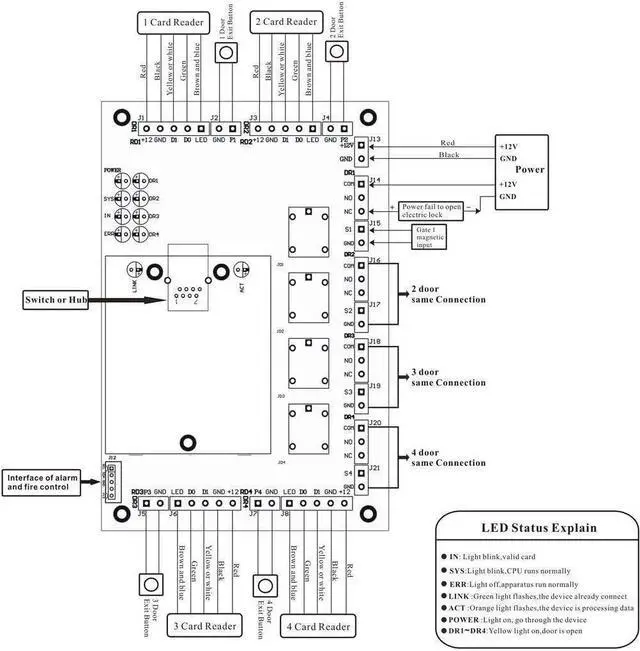 Control 4 doors, Get in door by swiping card, get out door by Exit button,Can Store/download/check Entry Detail records