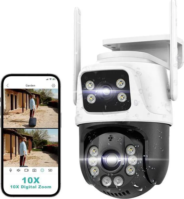 6MP HD Image & Full-Color Night Vision:The outdoor security camera wireless is equipped with white and infrared lights, as well as three night vision modes:full color, infrared, and smart vision, which provides ultra-high-definition images even at night, and all-weather monitoring of home security