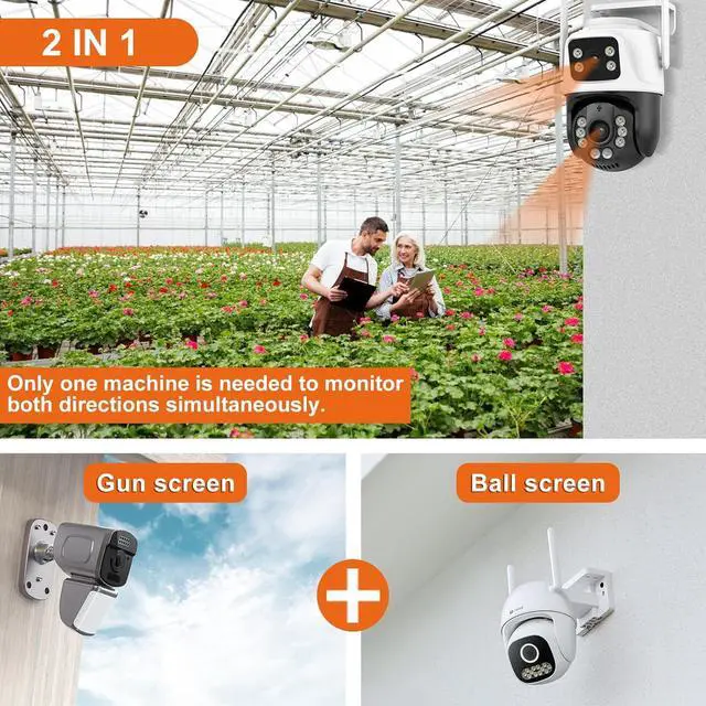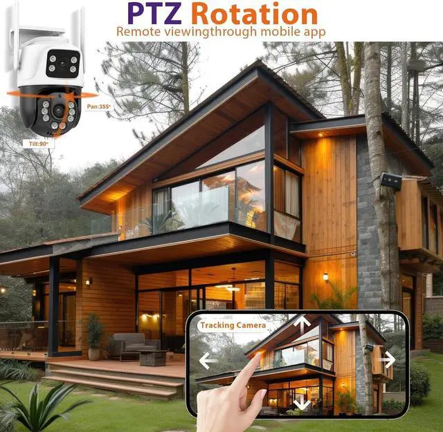 Comprehensive Protection: Equipped with lighted alarms, two-way audio, AI detection, auto-tracking, and smart alerts, all your security needs. Easy to install and setup, IP65 waterproof rating to withstand rain and snow. Outside camera wireless for car parks, warehouses