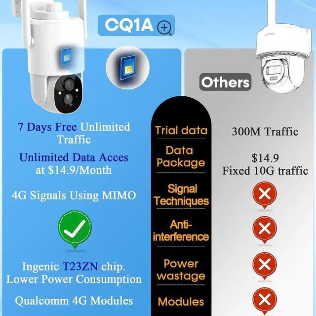 Affordable Subscription Plan + 32GB SD Card for Video Storage - Get a $14.90/month unlimited data plan, no hidden fees. Plus, enjoy 32GB SD card storage included for hassle-free video storage, reducing the need for additional subscriptions