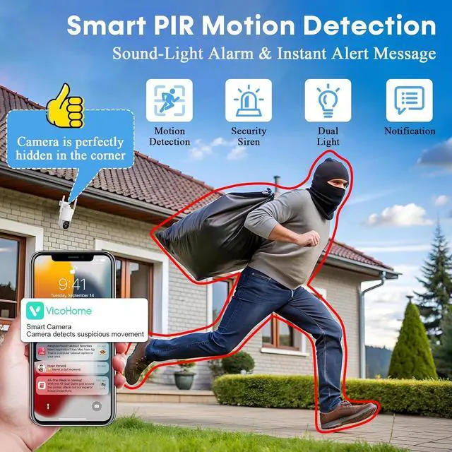 Smart Motion Detection with 360° Instant Alerts - Real-time alerts sent directly to your phone when motion is detected. Stay informed and take quick action to respond to unexpected events at your property