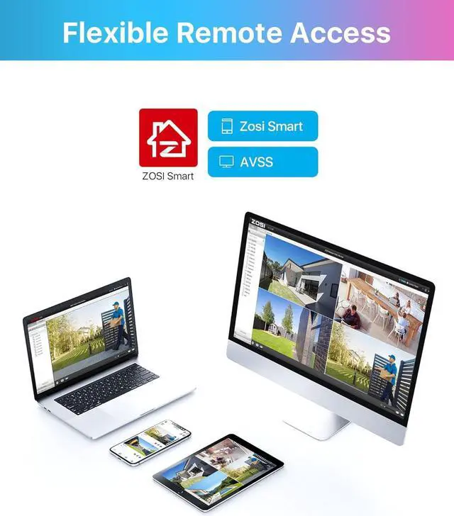 (3). [ Local or Remote Access, Playback Anytime & Anywhere ] __ View and control your security system locally by connecting the system to a monitor without internet, or via free ZOSI Client software on tablet, PC, or via Smartphone APP (ZOSI Smart ) on mobile devices remotely.You can also playback significant evidence or funny videos records by searching different days, hours or minutes.