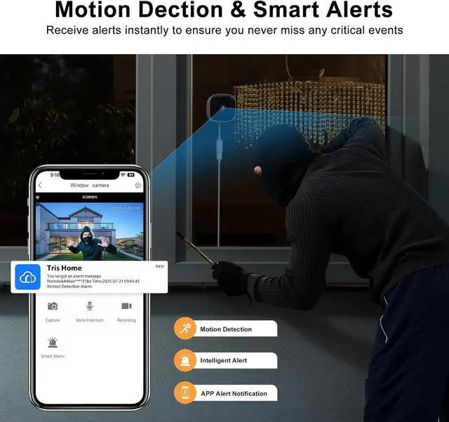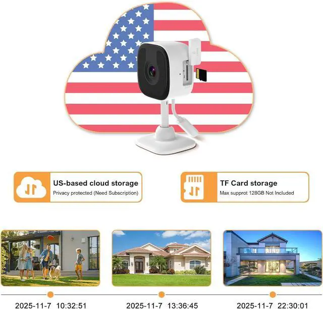 Continuous Recording and Secure Storage Designed for comprehensive surveillance, the window camera offers 24/7 continuous recording to capture every moment without missing a beat. It supports both local storage via an SD card and secure cloud storage based in the United States, ensuring robust data protection and privacy.