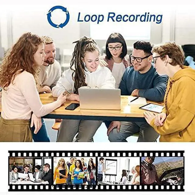 Loop Recording & Long Battery Life Automatically overwrites oldest files when full. Record up to 120 minutes on a single charge with fast recharge