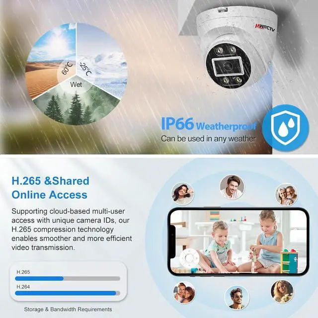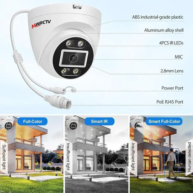 HD 8MP PoE Cameras 8MP ultra-HD PoE IP camera delivering sharp, detailed footage day and night. Enjoy color night vision for vivid low-light monitoring and IP66 waterproof durability for outdoor use. Built-in Mic and speaker lets you communicate remotely, whether greeting visitors or deterring intruders.(Note This is a FIXED IP Camera)