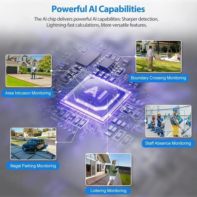Advanced 4K 16CH NVR+Pre-Event Recording FeatureThis 8-port PoE NVR supports expansion up to 16 channels for future upgrades.automatically capturing critical moments by starting recording 10+ seconds BEFORE motion detection triggers and continuing 10+ seconds AFTER the event ends for complete context.Equipped with built-in AI analytics,the system offers multiple smart detection modes,including Area Intrusion (enabled by default), Line-crossing Detection, Vehicle Retrograde,People Absence,Users can easily activate additional detection modes based on their specific monitoring needs.UP to 16TBNot INclude