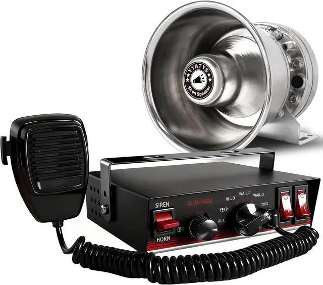 Complete PA Kit Included: Emergency Warning Horn siren PA system comes with control box, wired mic & silver horn speaker. Push to Talk overrides the siren during time of usage, Handheld microphone for easy one-handed operation while driving
