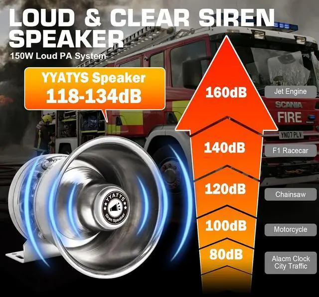High-Volume Audio Performance: The car pa system delivers 200W power output with 118-130dB siren speakers for clear, you get quality audio output which is long-range sound projection