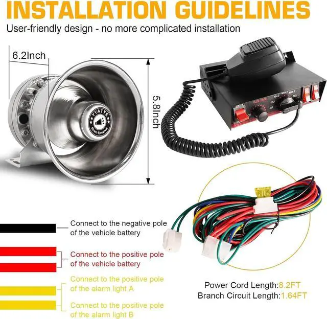 Versatile Operation Modes: YYATYS warning system include Horn and Siren modes with the siren option giving you Yelp, Wail, Hi-Lo etc. and Manual Horn/Siren for flexible use in police, ambulance, fire, engineer, private vehicles, etc.