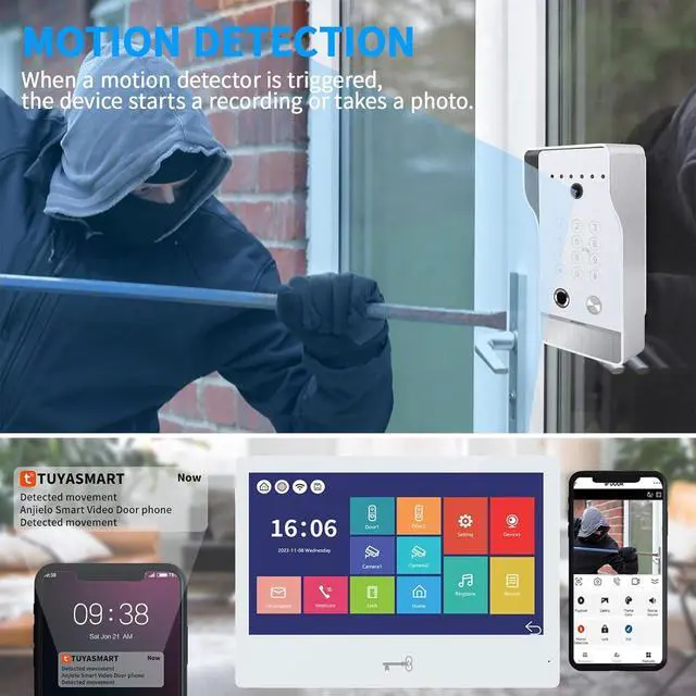 10 INCH TOUCH MONITOE AND 1080P DOORBELL:10 inch touch screen monitor, touch operation, hands-free, support Wifi to connect to the Internet. Outdoor doorbell with waterproof cover, built-in infrared sensor and 1080P camera,148o wide angle, night vision, waterproof, dustproof and vandal resistant. You can connect all 12V electronic locks.