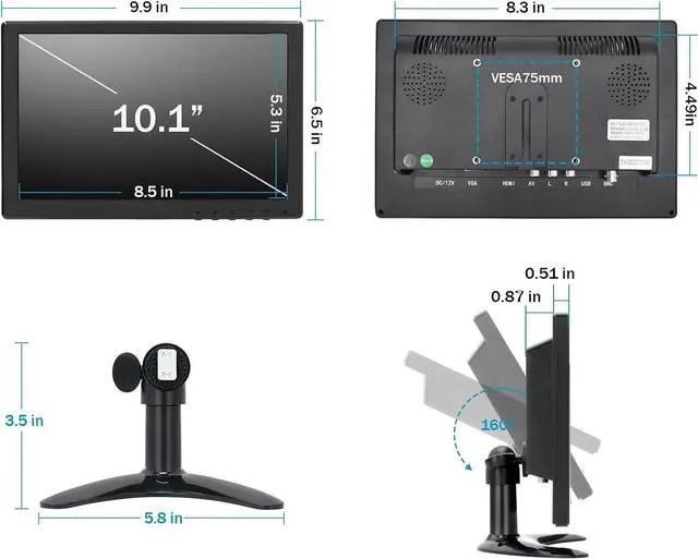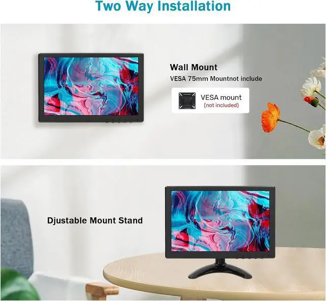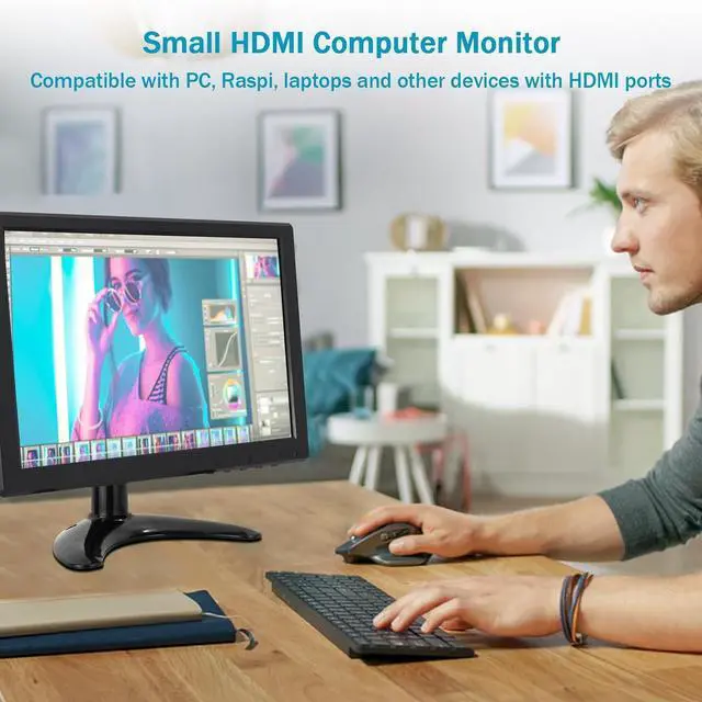 Small and PortableThis 10 inch small HDMI monitor for computer is lightweight. It's easy to pack in a bag when travelling, and you can also carry it in a car, RV or truck. Portable LED display screen is also ideal for home entertainment, you can place it in the kitchen, bedroom or bedside table.
