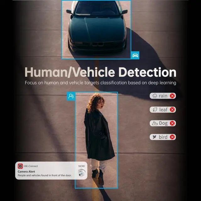 Human and Vehicle DetectionTurret IP camera, intelligent analysis technology based on deep learning algorithms, which can realize targets classification (Human/Vehicle/ Others), and accurately detect concerned targets to improve efficiency of monitoring and searching.