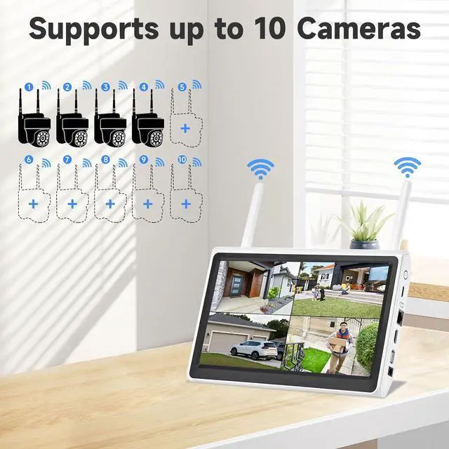 All-In-One - The integrated 10 channel 4K WiFi NVR Built-in 10.1" HD Monitor makes everything easy. No need to prepare extra monitor to live view your cameras.