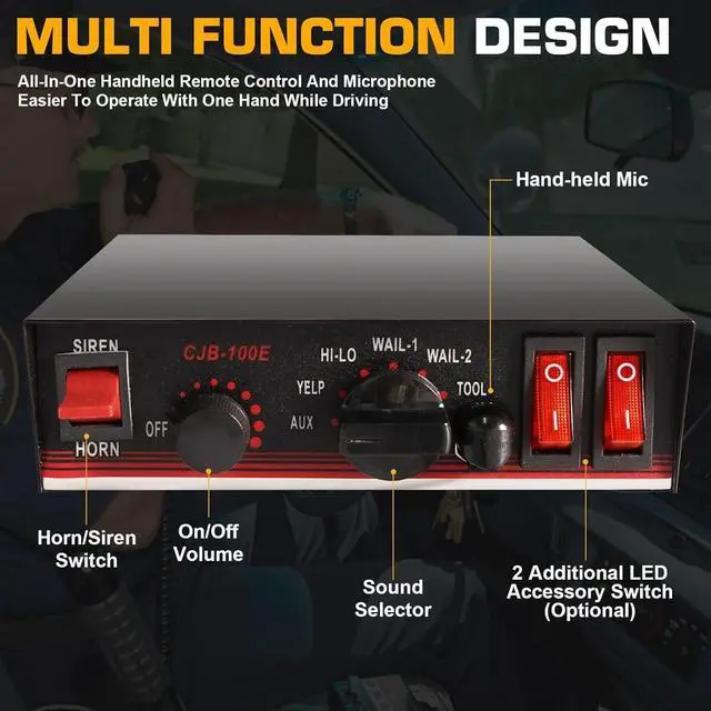 Versatile Operation Modes: YYATYS warning system include Horn and Siren modes with the siren option giving you Yelp, Wail, Hi-Lo etc. and Manual Horn/Siren for flexible use in police, ambulance, fire, engineer, private vehicles, etc.